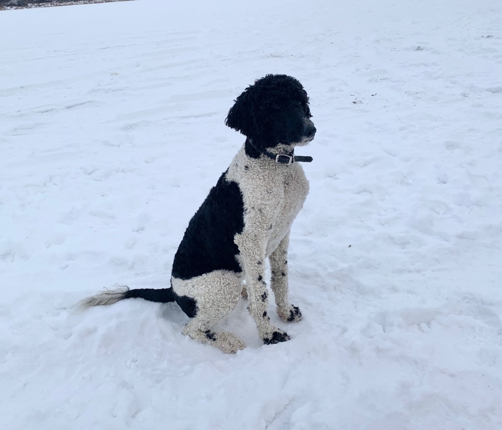Winnie – Our main Standard Poodle female. She is the most loyal and smart female we have ever owned. Win is genetic tested and cleared of any diseases. We have only ever used her for our Sheepadoodle crosses and love the pups that she raises!